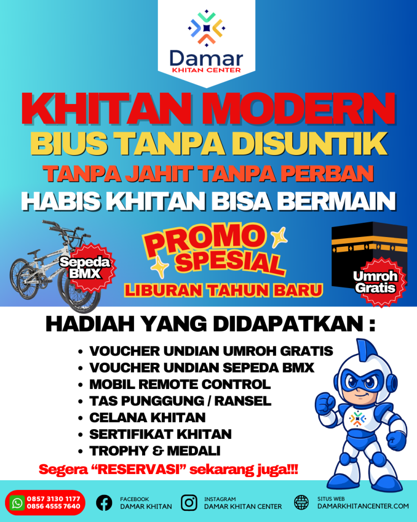 Setiap khitan di DAMAR KHITAN CENTER di Peride tanggal tersebut akan mendapatkan Voucher Undian Sepeda BMX & juga hadiah-hadiah menarik lainnya secara gratiissss..